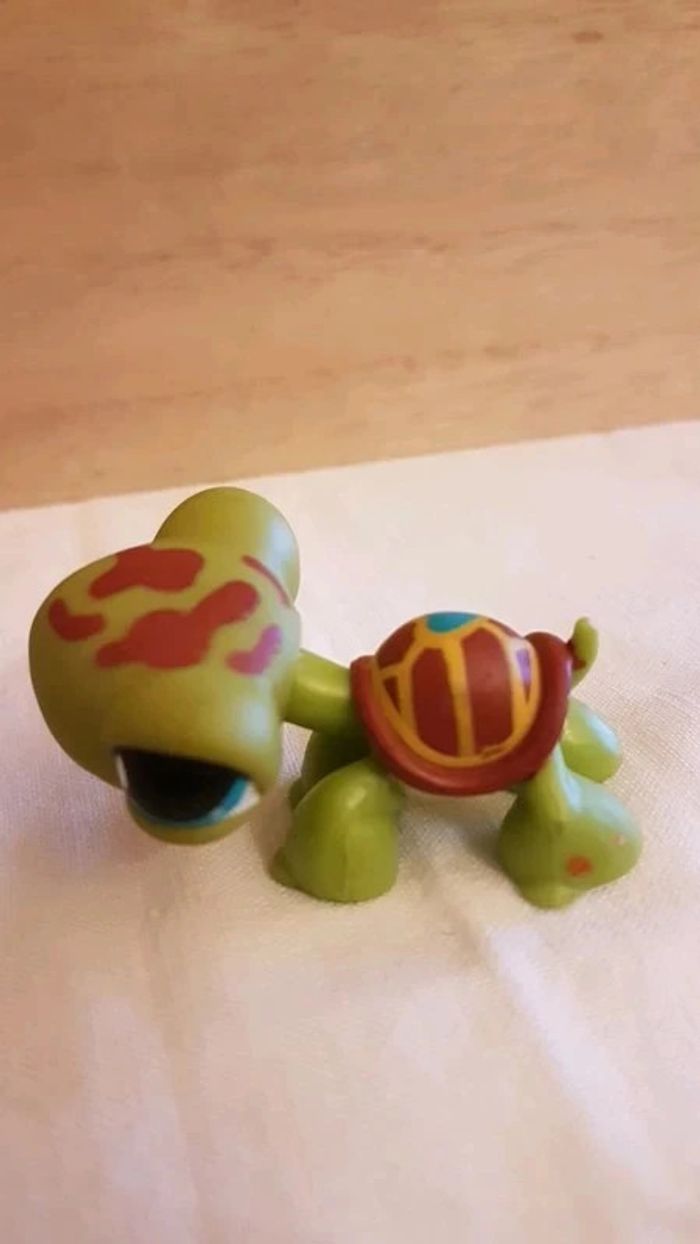 ⬇️mes autres annonces de petshop👉 #cg89petshop 😁 réductions activées des 2 articles ! une Tortue Petshop aimanté avec carapace coeur bleue et tache de camouflage sur la tête. Bon état #petshop #tortuepetshop #lps