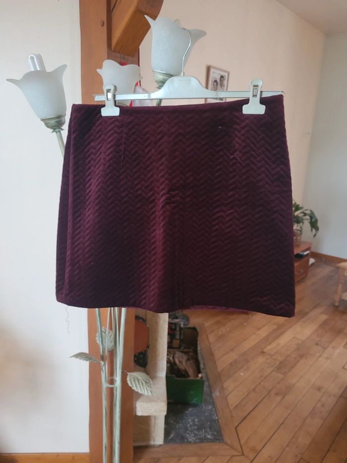 ⬇️mes autres annonces pour femme taille 44👉 #cg89femme44 😁 réductions activées des 2 articles ! une jupe droite en velours damassée de couleur prune. Elle mesure 44 cm à la taille et 46 cm de longueur. Bon état, taille 44, marque primark #cg89330 #primark #jupedroite
