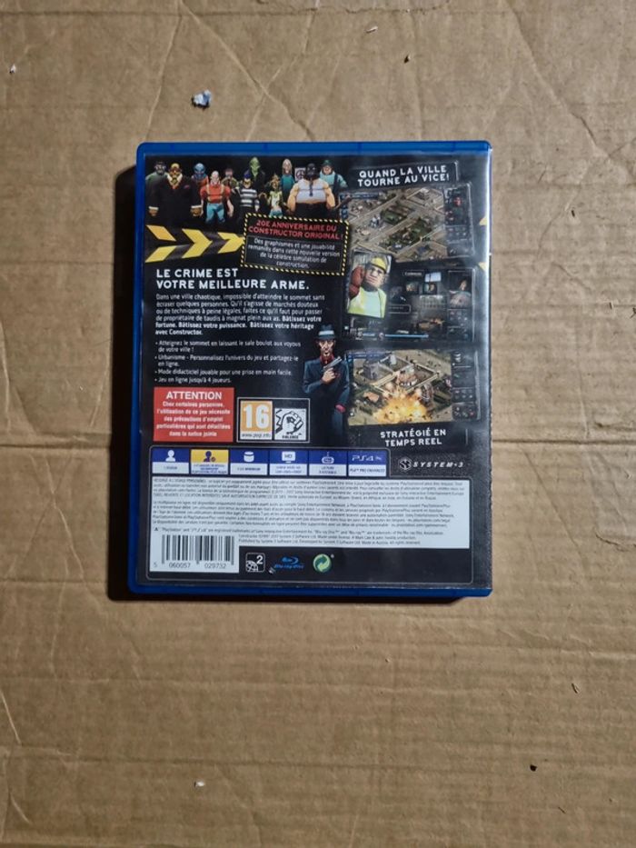 Jeu Constructor pour PS4 en bon état. Version française. Le jeu a quelques micro-rayures mais le jeu fonctionne parfaitement. La jaquette n'est pas l'originale mais une photocopie couleur réalisée sur papier épais et satiné. #jvtm59_PS4