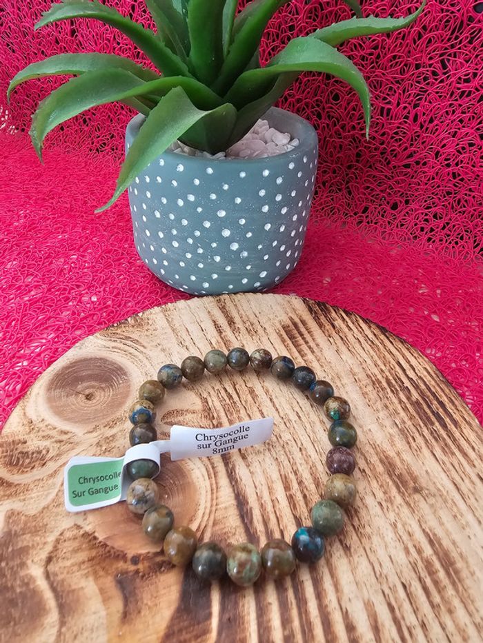 Bracelet Boule 08mm Chrysocolle Sur Gangue AB