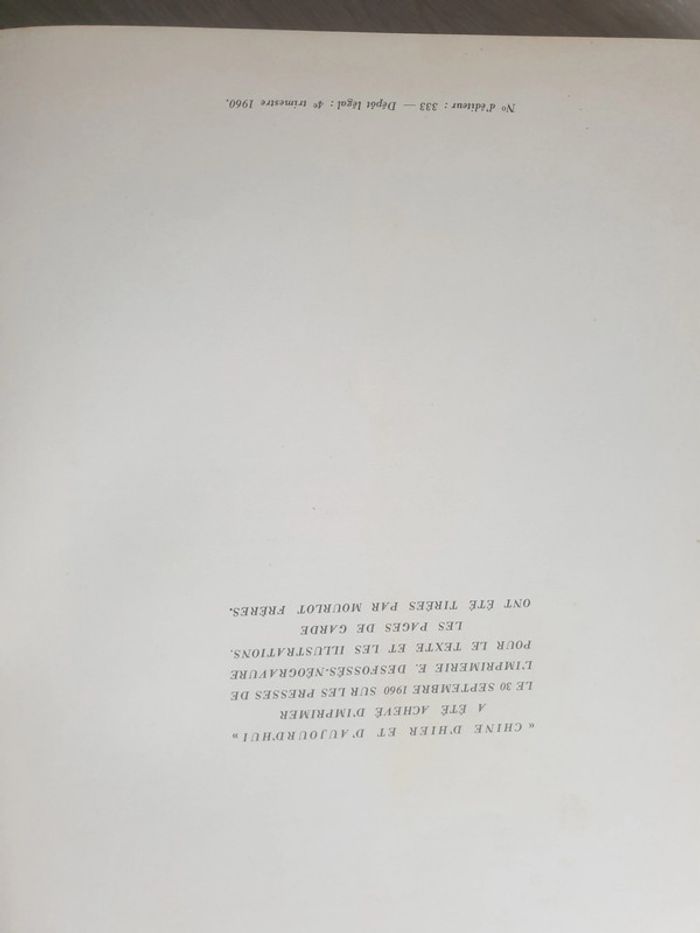 Auteur(s) : Pierre Huard - Ming Wong Editeur : Horizons De France Langue : Français N° Editeur : 333 Dépôt légal : 4é trimestre 1960 Format : Grand, + de 1kg Civilisation, arts et techniques de la Chine de la préhistoire à 1960. 271 pages Nombreuses photos, gravures et cartes noir et blanc et couleurs En très bon état pour son âge Pas de traces - pas d'odeur Couverture tissu avec lithographie Annotation à l'encre en page de faux titre #collection #chine