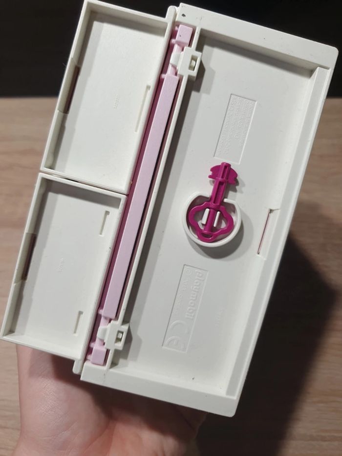 Valisette playmobil Salon de princesse S'ouvre et se ferme grâce à la clé rangée dessous