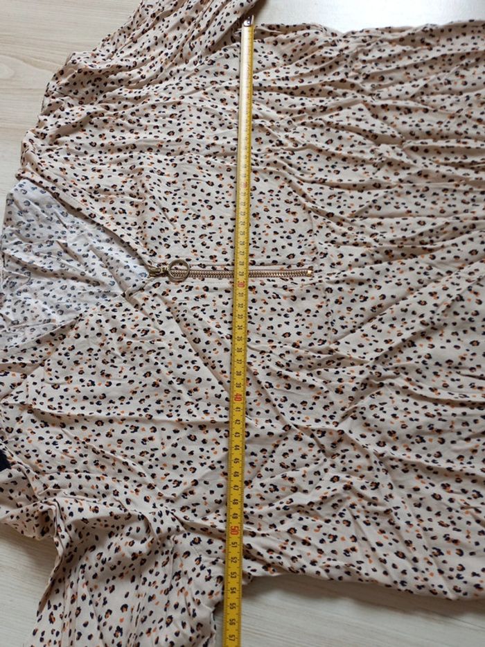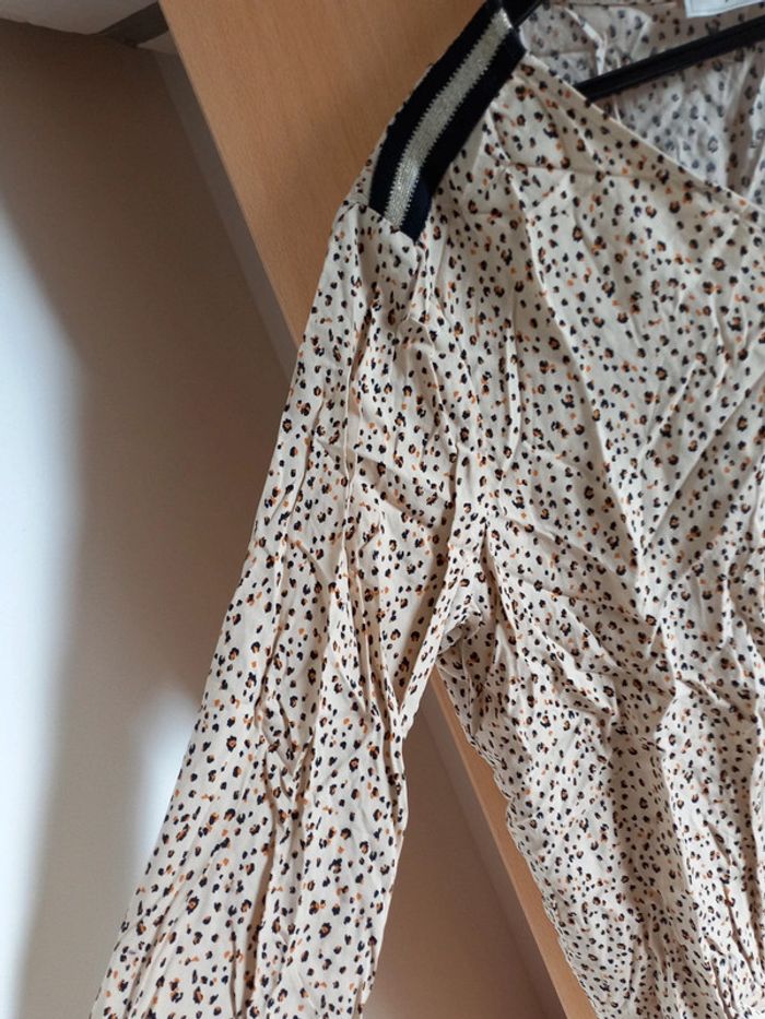 Blouse manches 3/4 créme avec motifs noirs et oranges Col v avec fermeture Detail aux épaules Promod Taille 42