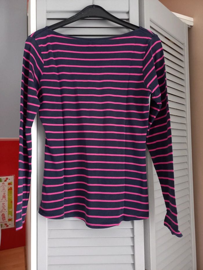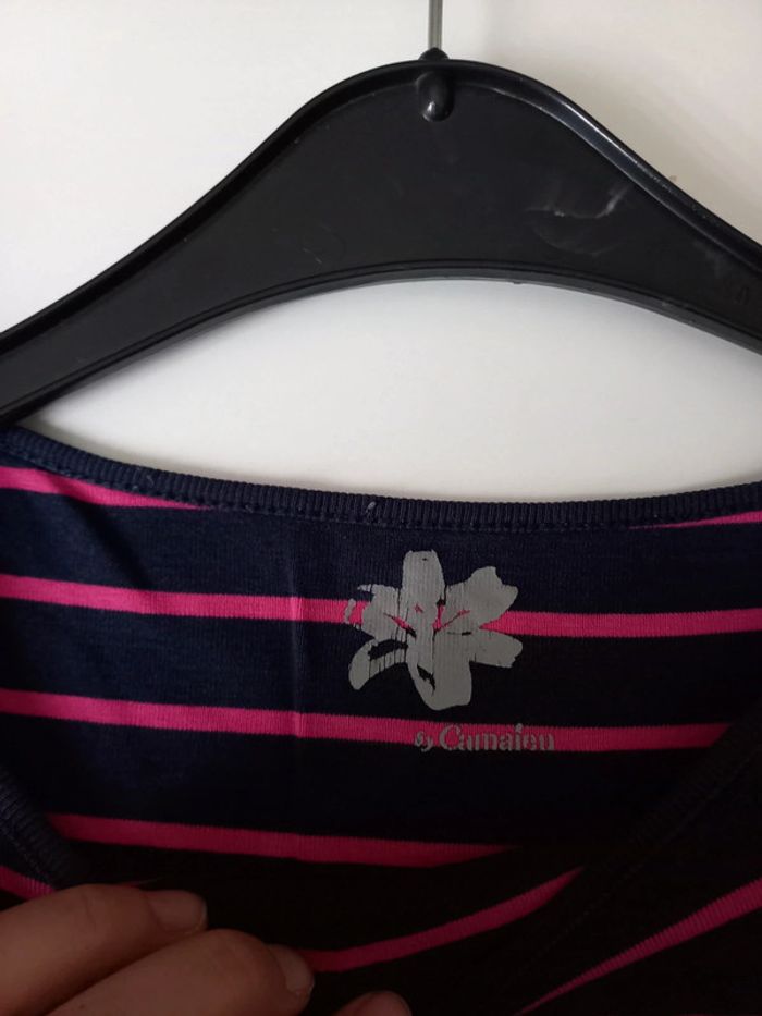 Tee shirt bleu marine rayé fushia avec col rond Manches longues Camaieu Taille 38