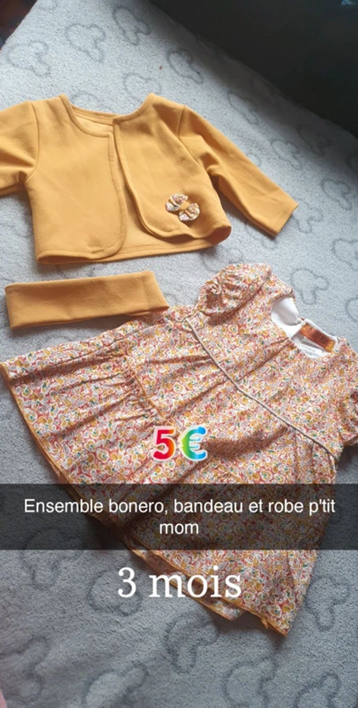 Ensemble robe, gilet et bandeau fille 3 mois. #elostitch3moisfille