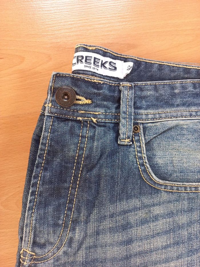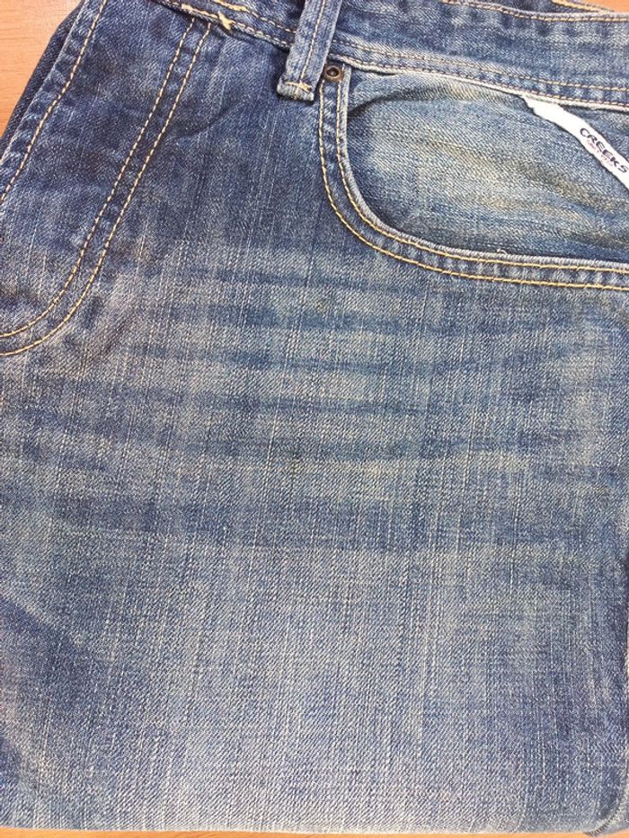 5 poches Impression tâche devant se voit à peine car le jeans est plein de reflet délavé
