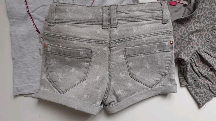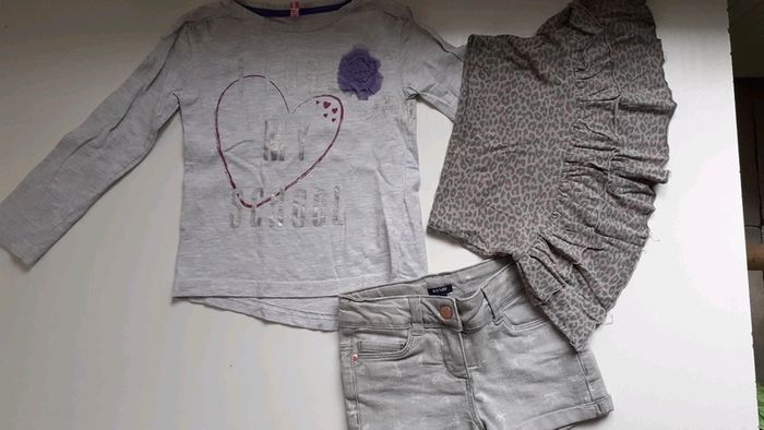 Short jeans bon état Jupe orchestra élastique ok (petit fil) Tee-shirt long taché 🎁 #troc38420_5ansfille