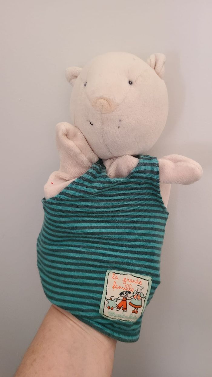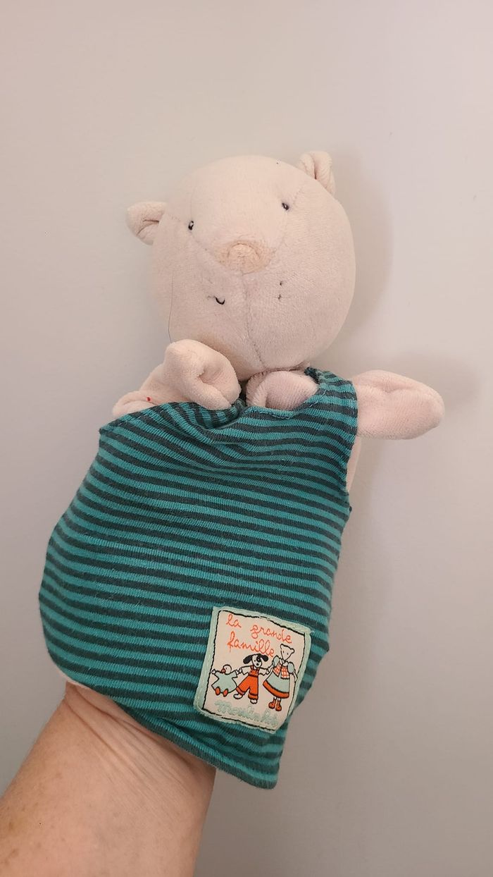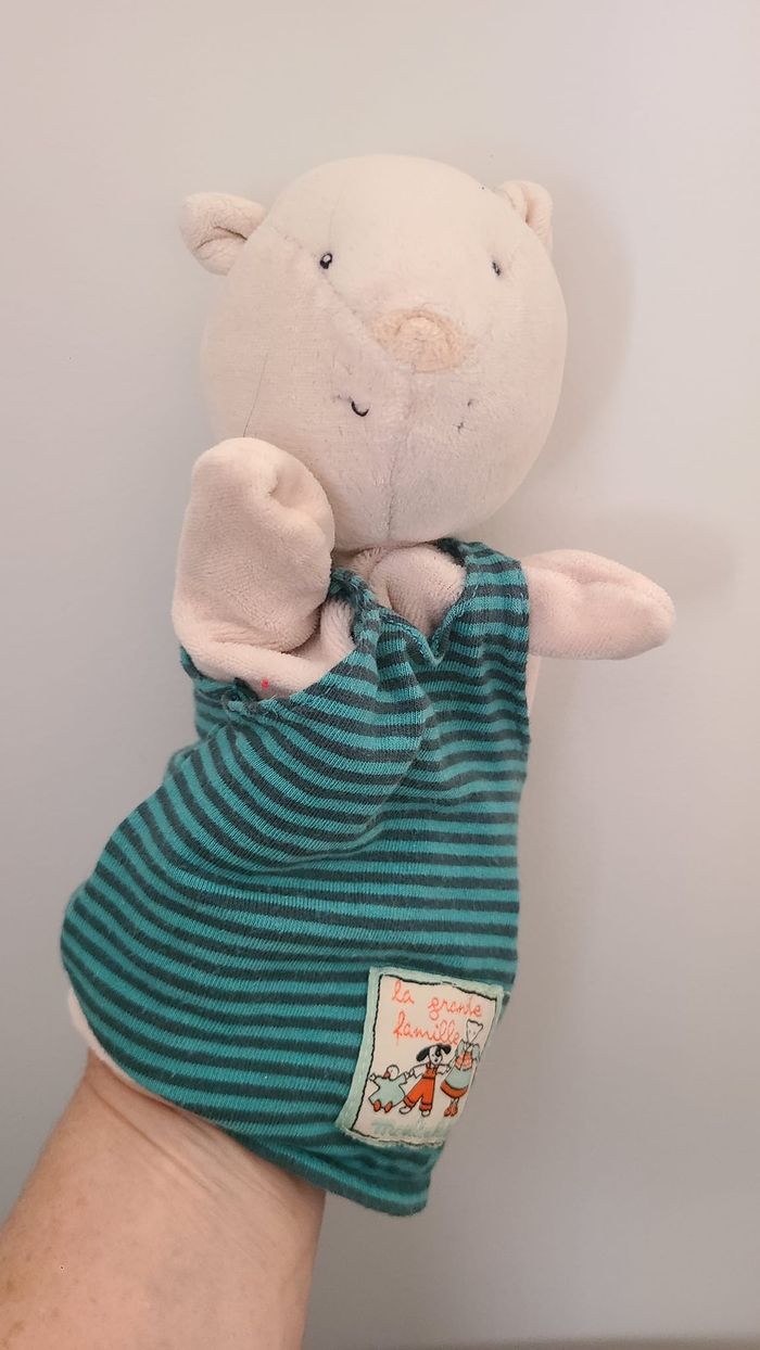 Moulin roty La grande famille doudou marionnette Mimosa le chat bleu gris