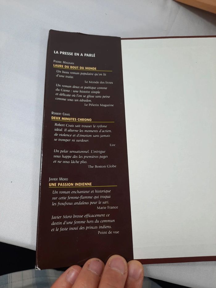 Pierre Magnan : Laure du bout du monde Robert Crais : deux minutes chrono Javier Moro : une passion indienne Alan Totchmarsh : Rosie Bon état ✨️ Bonne affaire !! ✨️ Pour 4 livres achetés, un cinquième à 1€ vous est offert en plus des réductions déjà activées ! 📚 N'hésitez pas à fouiller mon dressing à la recherche des livres grâce au hashtag #sevakk22_livre