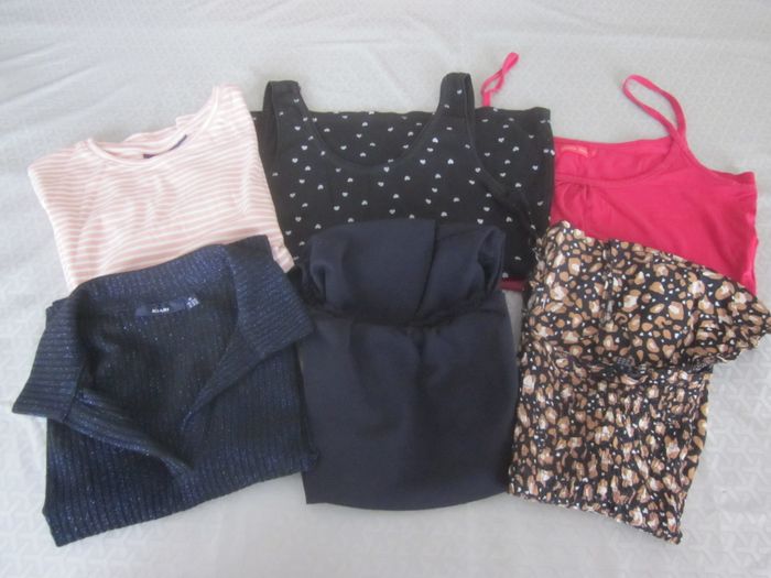 M, lot 5 hauts + 6 ème offert (le rayé, petit trou), kiabi, tissaia,