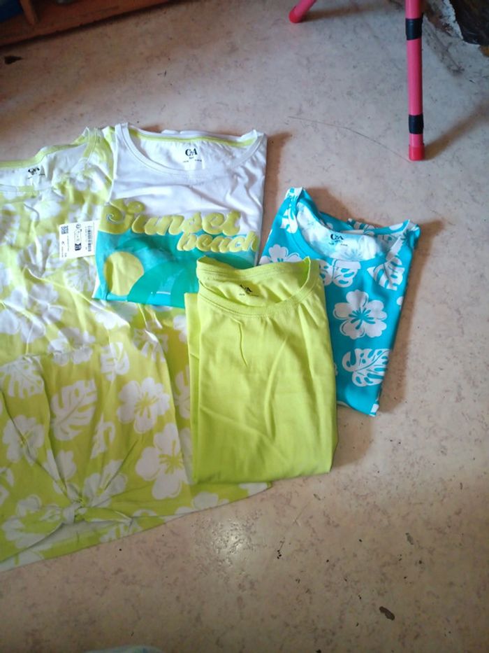 Lot 4 tee  neuf blanc et vert fleur avec nœud bleu et vert normaux