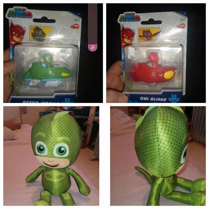 Lot pijamask 2 petit véhicules gluglu et bibou et peluche gluglu 25cm env