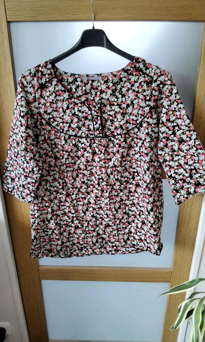 Blouse T-shirt manches 3/4 à  fleurs - femme - 40 - photo numéro 1