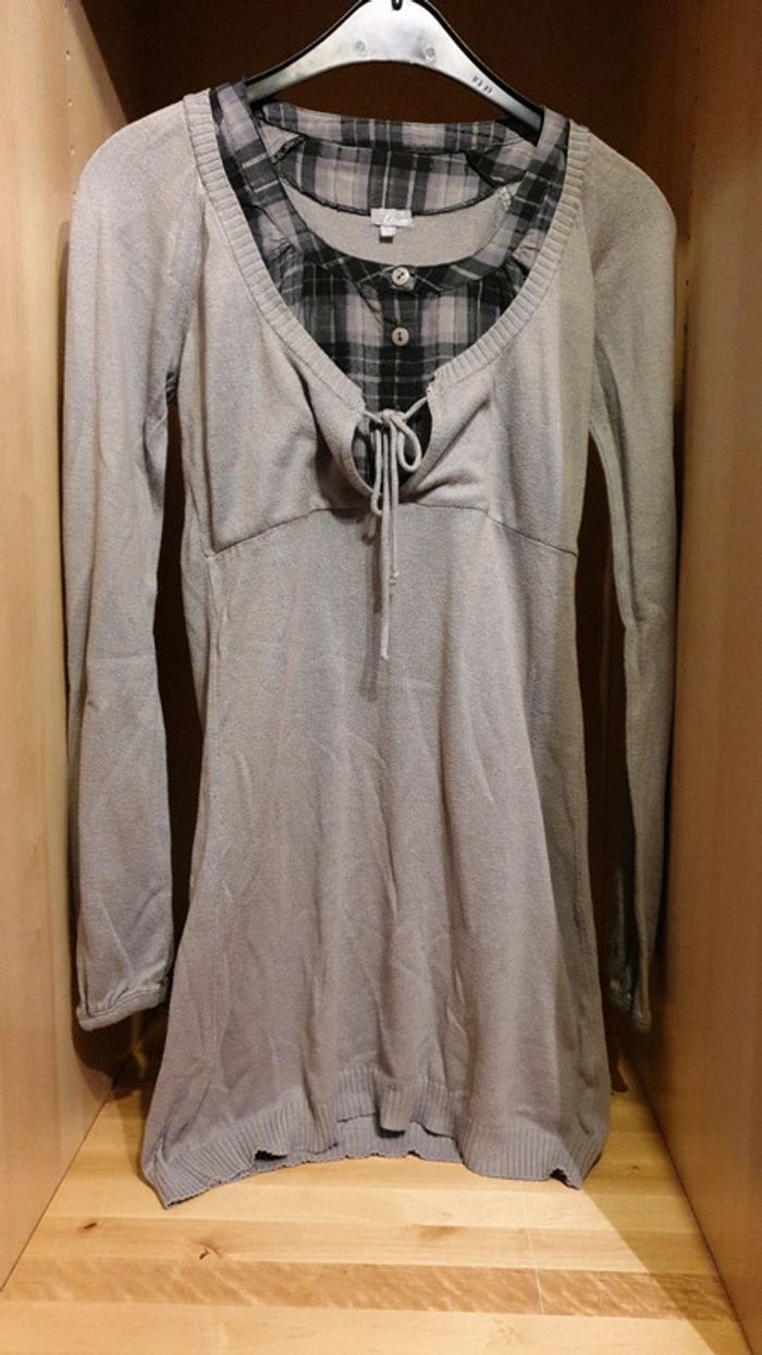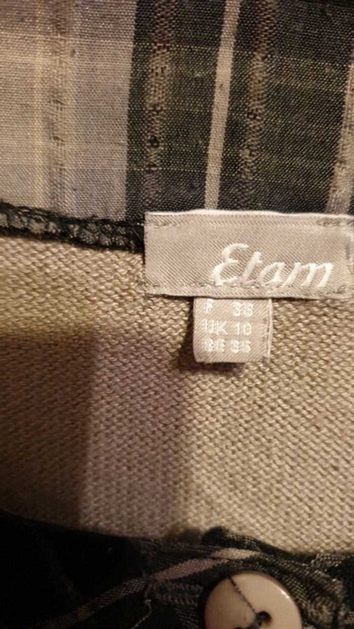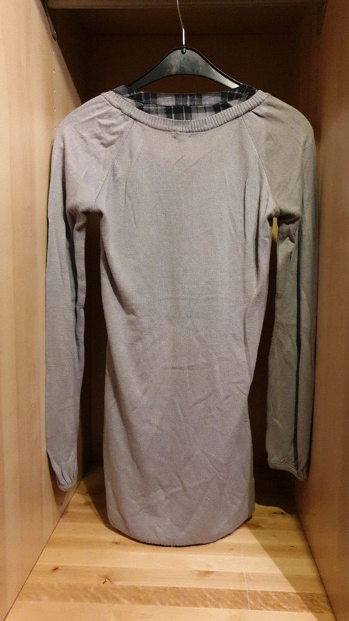 Pull long gris avec effet chemise a l'intérieur noir à carreau taille 38 marque etam