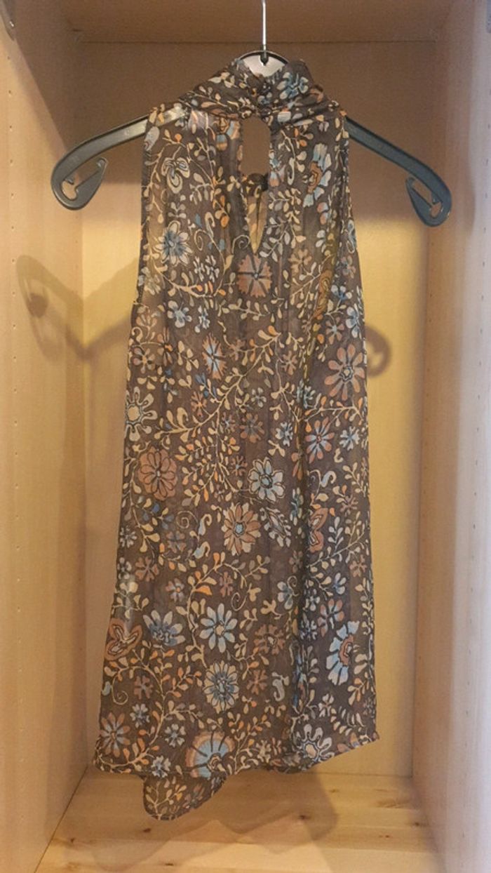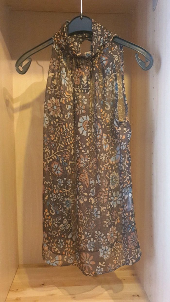 Tee shirt sans manque transparent fleurie col resserrer au cou taille 36 marque camaieu