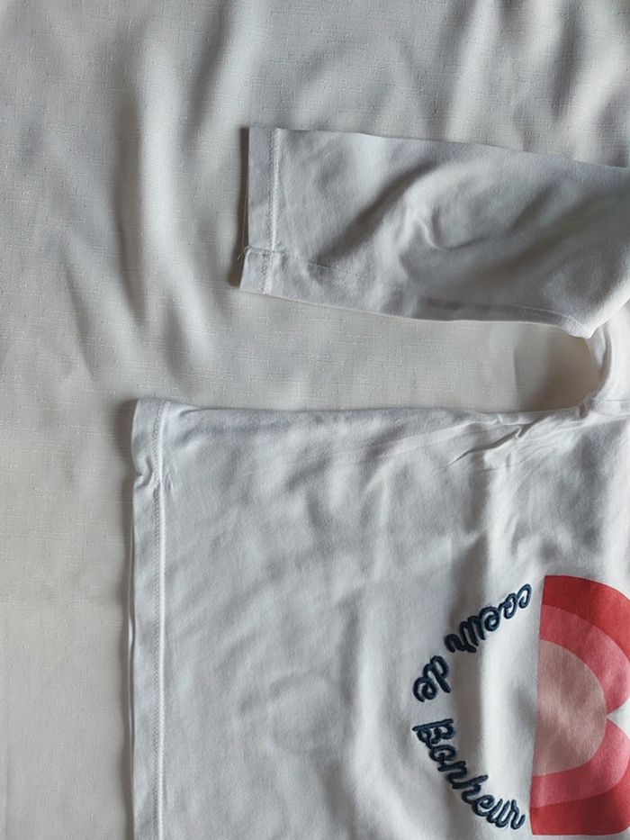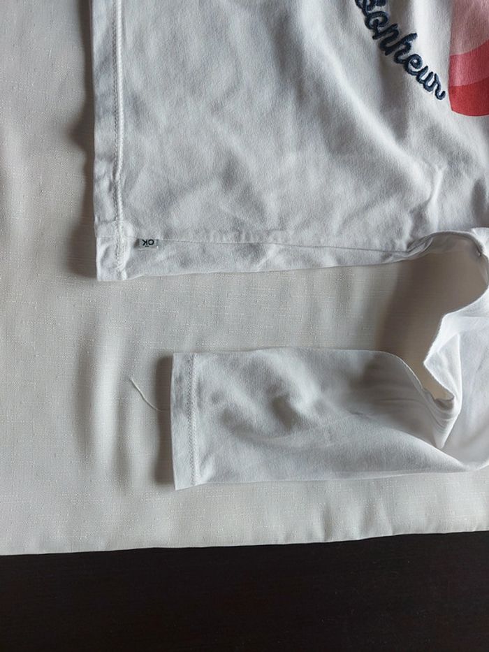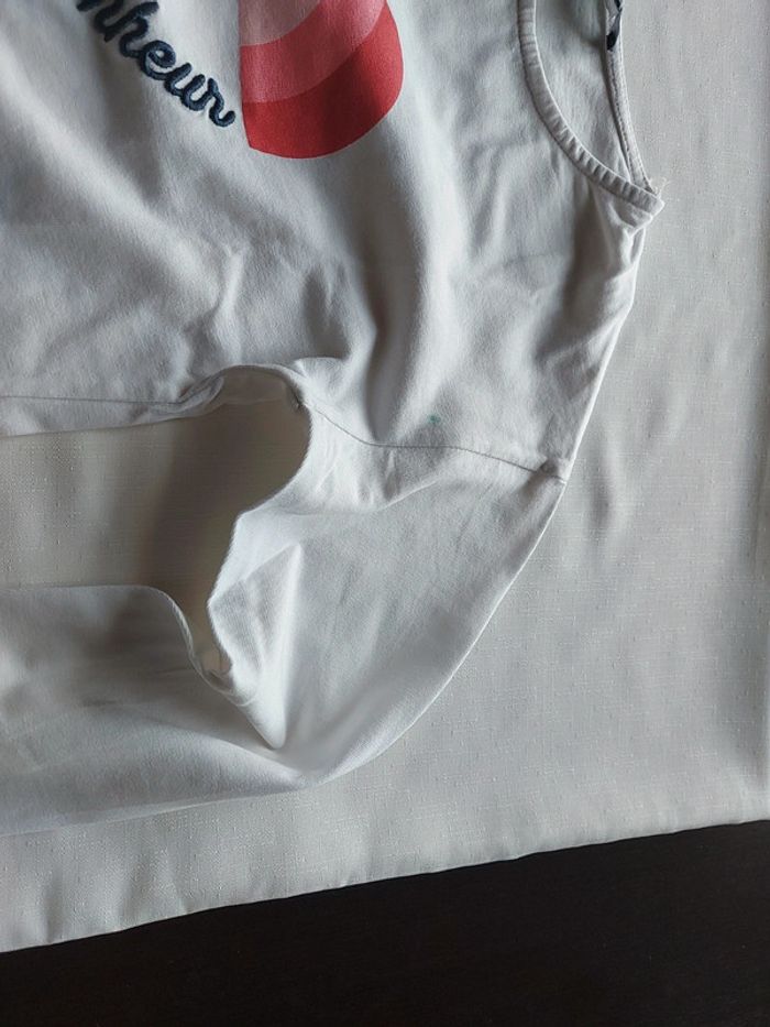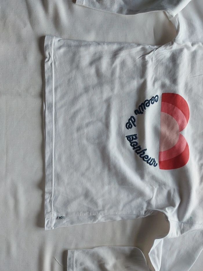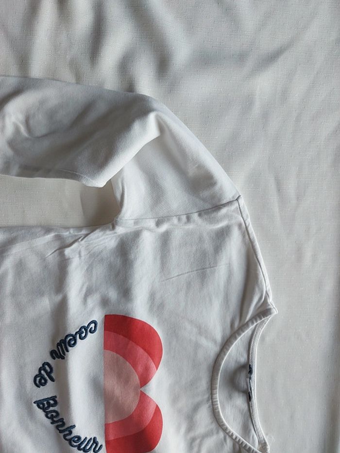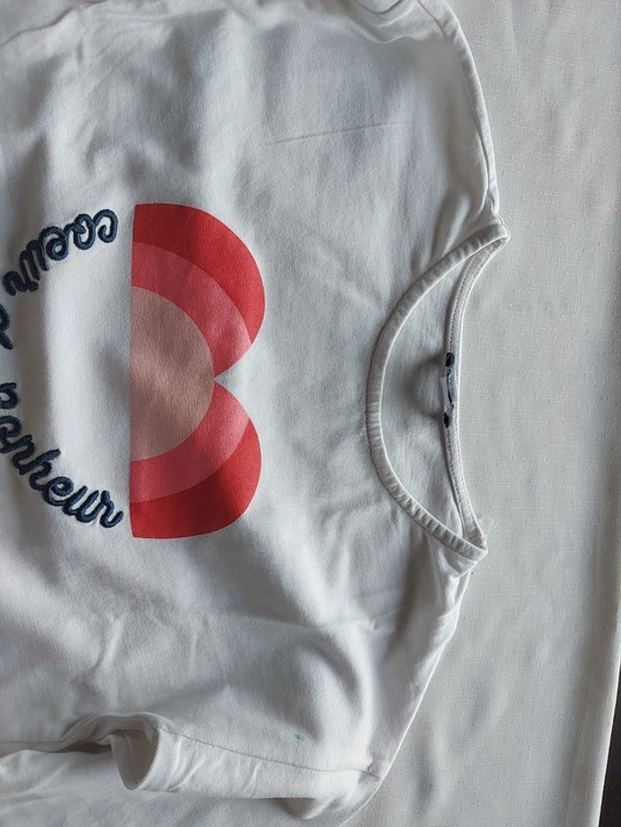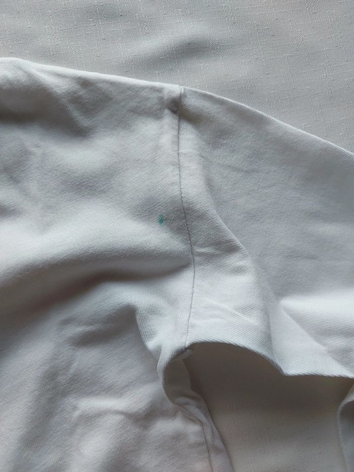 T-shirt en très bon état mais une petite tache verte que l'on voit en photo au niveau haut gauche. Petit prix de ce fait. Regroupez vos achats pour des frais de livraison optimisés.