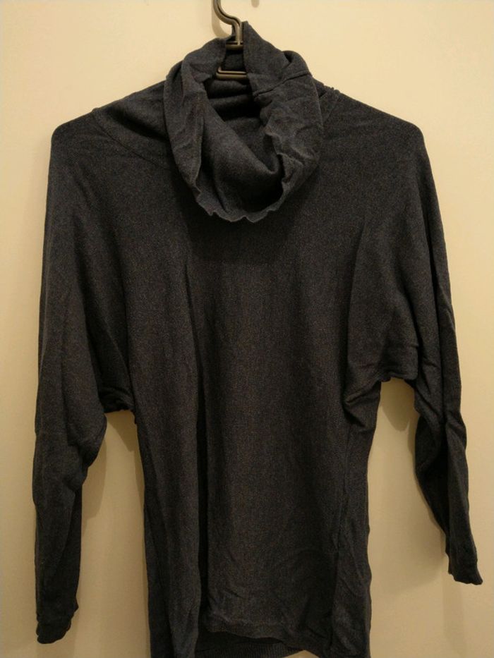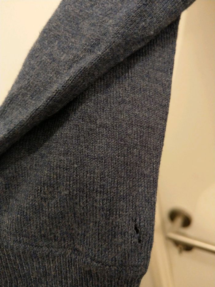 pull bleu avec col et manche 3/4 Un petit trou sur une des manches voir dernière photo