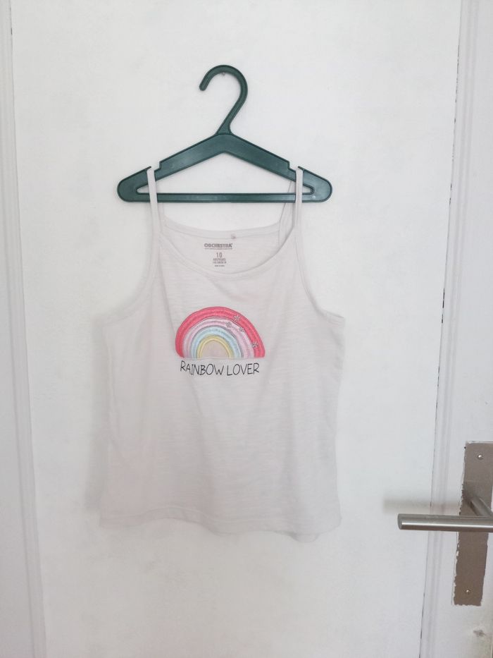 ✔️ Débardeur blanc motif arc-en-ciel ✔️ Marque : Orchestra ✔️ Taille 10 ans ✔️ Très bon état