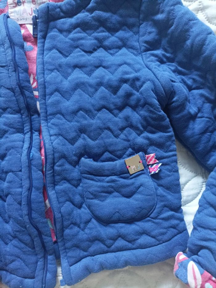 Épais Bleu Fermeture éclair Indiqué 5 ans mais taille petit Bien porté, couleurs moins vives qu'à l'origine