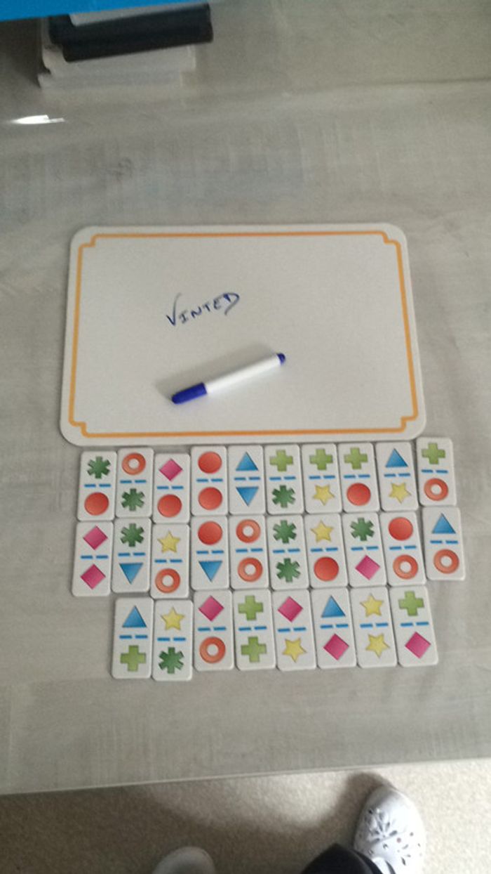 Jeu de domino et ardoise avec stylo et éponge