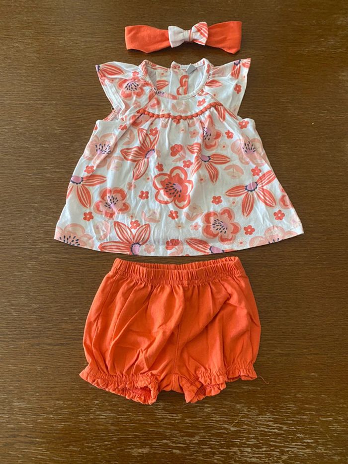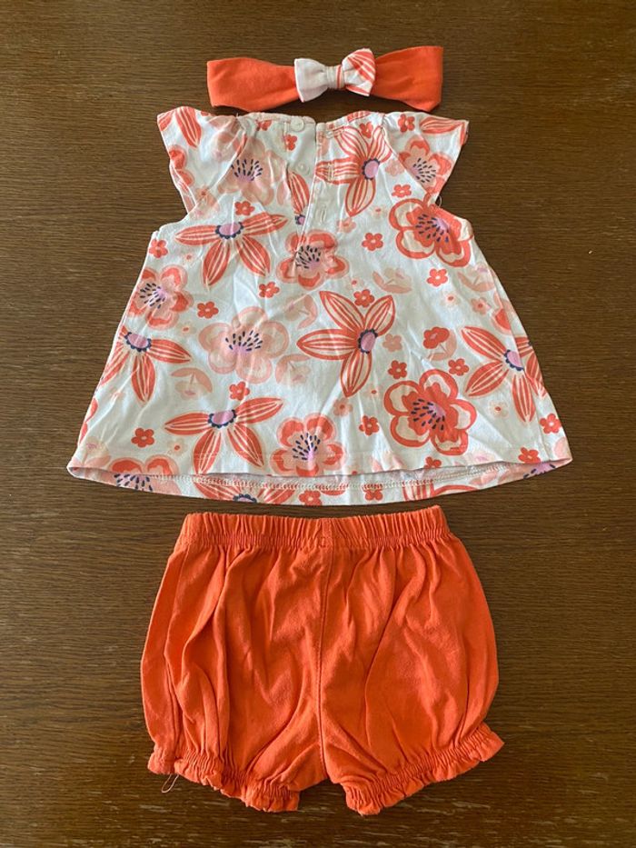 Ensemble short + tunique à fleur + bandeau 6 mois marque carrefour en très bon état #vetement6moisVero66xx