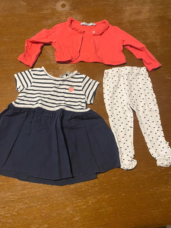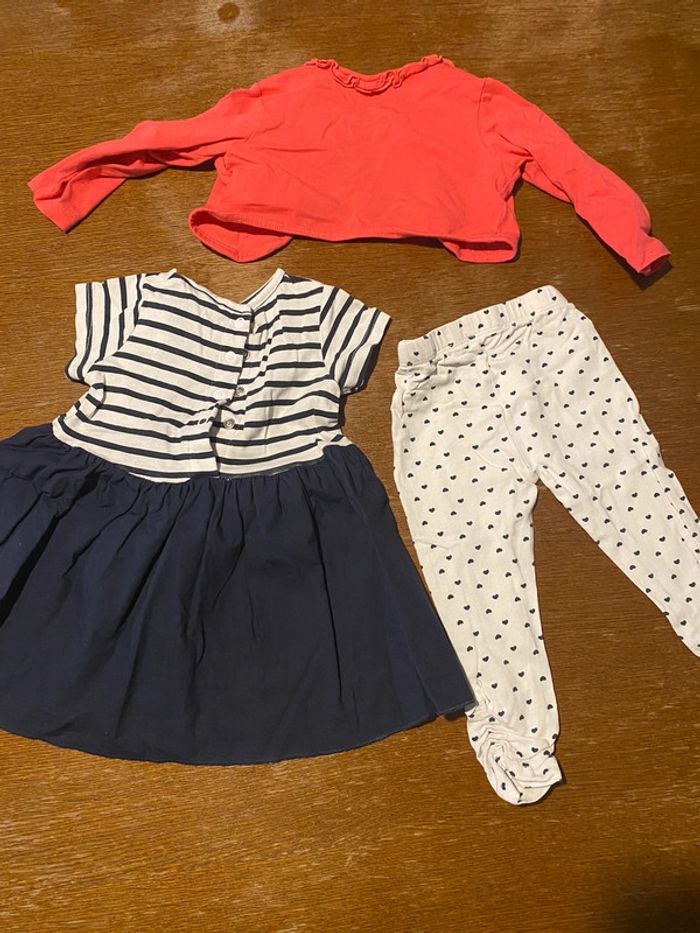 Ensemble robe + legging + gilet blanc, marine et rouge orangé 6 mois marque fashion private company, en très bon état #vetement6moisVero66xx