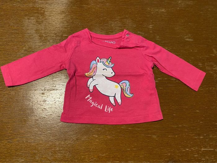 T-shirt manche longue rose fushia licorne "magical life" 3 mois marque in extenso en très bon état #vetement3moisVero66xx