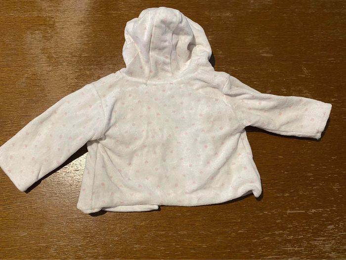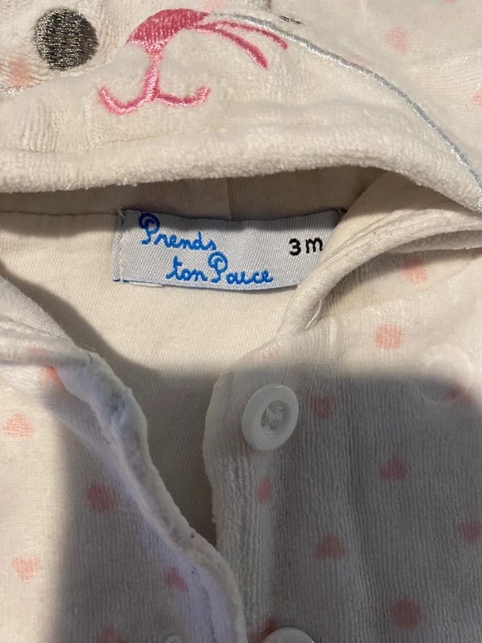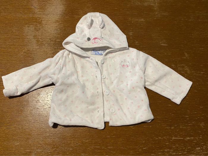 Gilet à capuche lapin blanche avec coeur rose à bouton 3 mois marque prends ton pouce en très bon état #vetement3moisVero66xx
