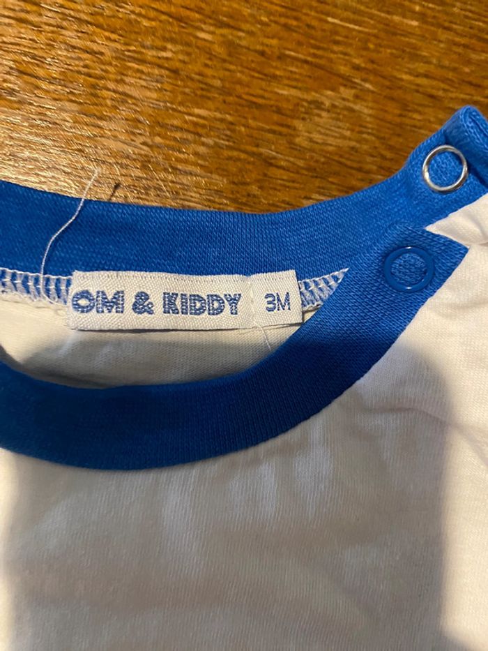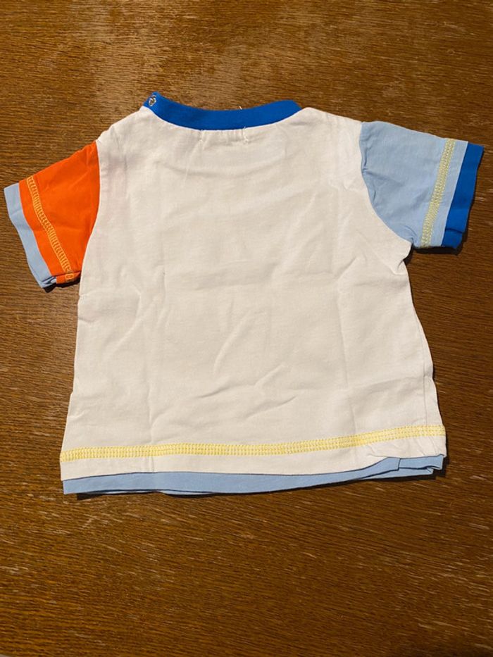 T-shirt manche courte blanc bleu orange 3mois marque OM & KIDDY, en très bon état #vetement3moisVero66xx