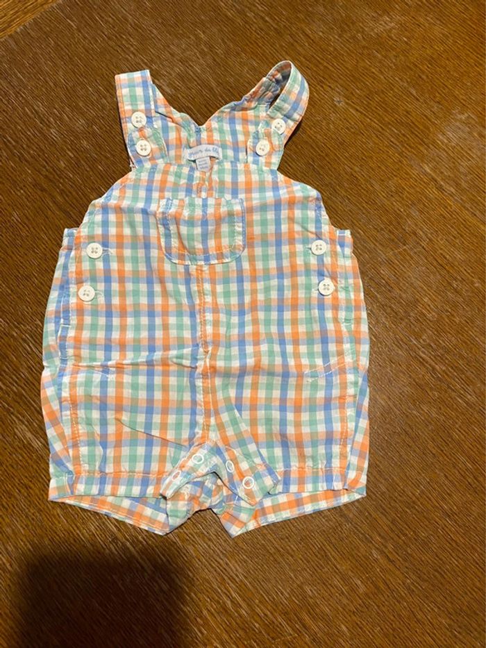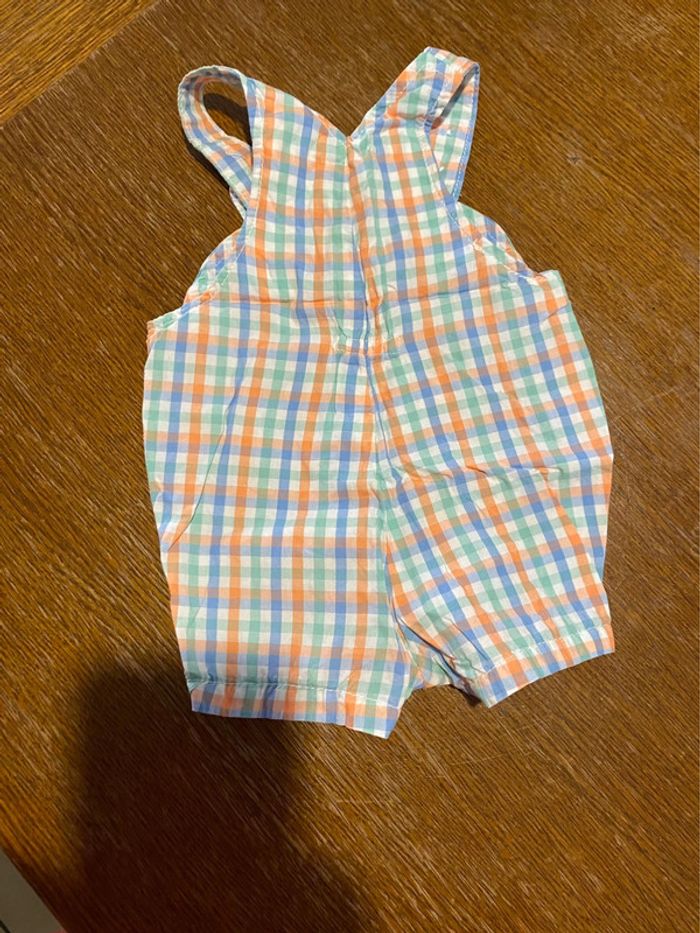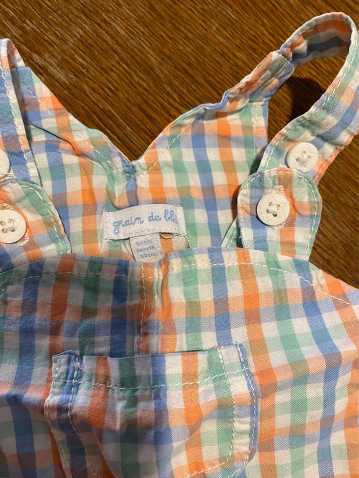 Salopette short blanche, orange, verte et bleu 1 mois marque grain de blé, en très bon état #vetement1moisVero66xx