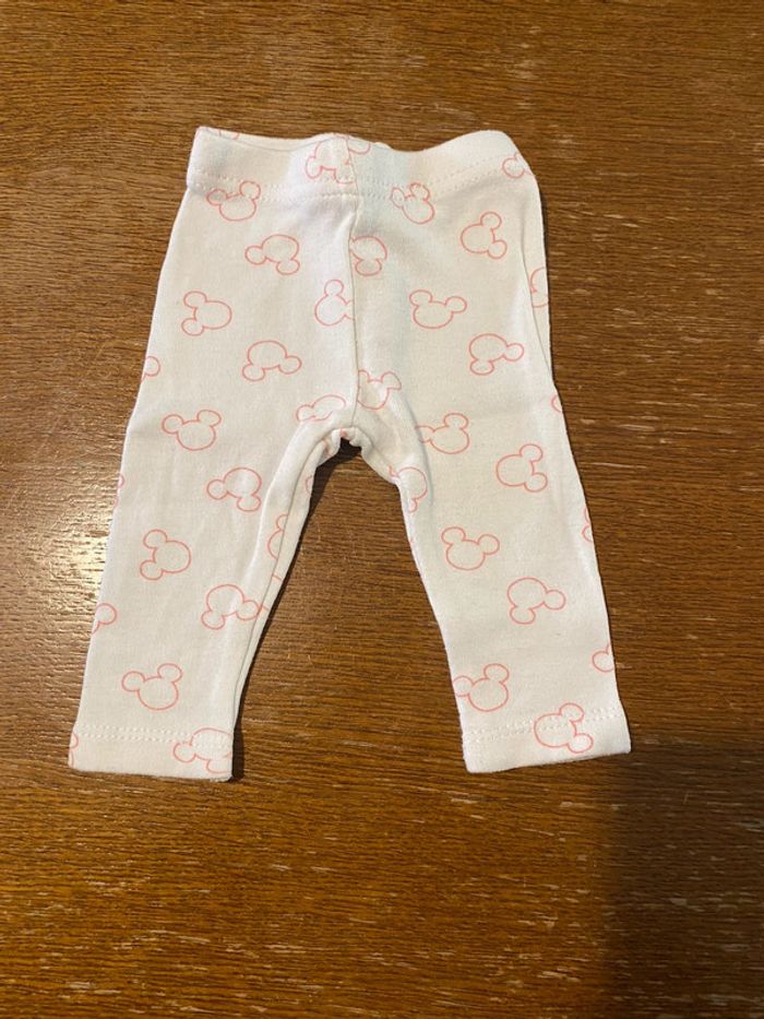 Legging blanc avec tête Minnie rose 1 mois marque disney baby, en très bon état #vetement1moisVero66xx