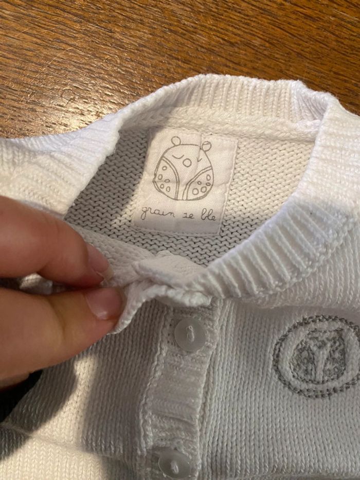 Gilet blanc et gris 1 mois marque grain de blé, en très bon état #vetement1moisVero66xx