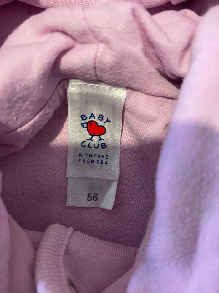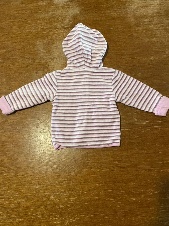 Gilet à capuche rayé rose marron et blanc 1 mois marque baby club, en très bon état #vetement1moisVero66xx