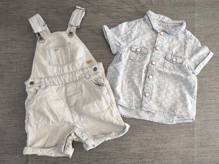 Salopette short et chemise légère 6 mois - photo numéro 1