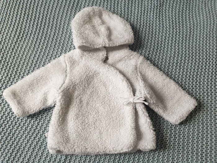 Veste blanche chaude effet "mouton". Unisexe. Marque Obaïbi. Taille 3 mois. #mimidacenfant #mimidacfille3mois #mimidacgarçon3mois