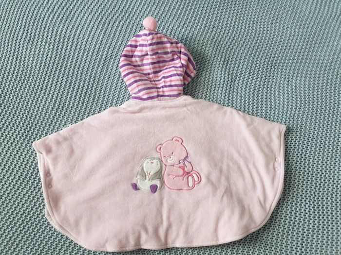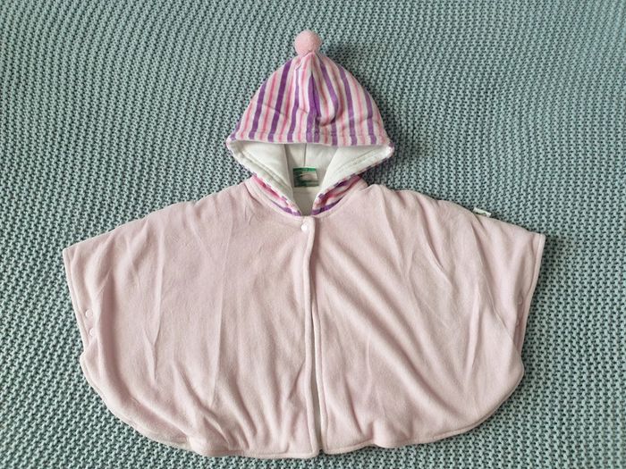 Poncho rose et violet. Capuche à rayures avec pompon. Jamais porté. Marque F.S. Baby. Taille 0/6 mois. #mimidacenfant #mimidacfille3mois