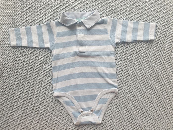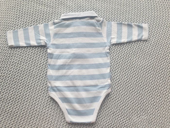 Body à col polo / chemise. Idéal pour mettre sous un pull. Rayures bleues. Marque Obaïbi. Taille 3 mois. #mimidacenfant #mimidacgarçon3mois