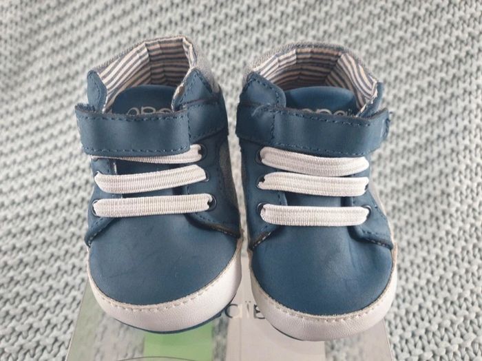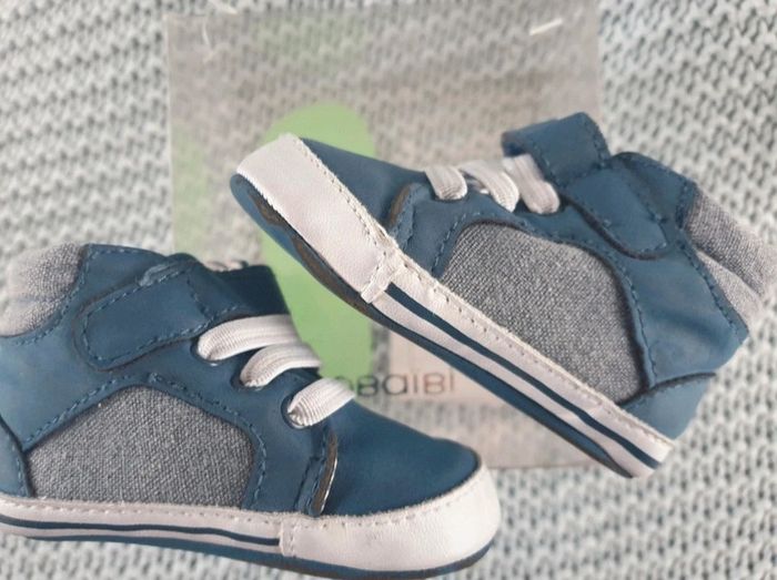 Baskets montantes bébé bleues, dans leur boîte d'origine. Taille 1/6 mois. #mimidacenfant #mimidacchaussures #mimidacchaussures17 #mimidacgarçon0mois #mimidacgarçon1mois #mimidacgarçon3mois #mimidacgarçon6mois