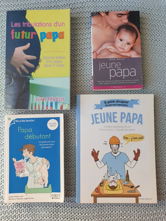 - Les tribulations d'un futur papa de Jean Tévélis , Journal intime d'un papa dans 9 mois ISBN : 9782352887416 - Papa débutant, Le guide que tous les jeunes pères attendaient! de Lionel Paillès ISBN : 9782754015608 - Jeune papa de Mikael Micucci ISBN : 9782501039376 - Le guide décapant des parents imparfaits : jeune papa de Candice Kornberg Anzel (contour de couverture un peu jauni) ISBN :9782501112062 #mimidaclivres #mimidaclivresadulte #mimidacpuériculture