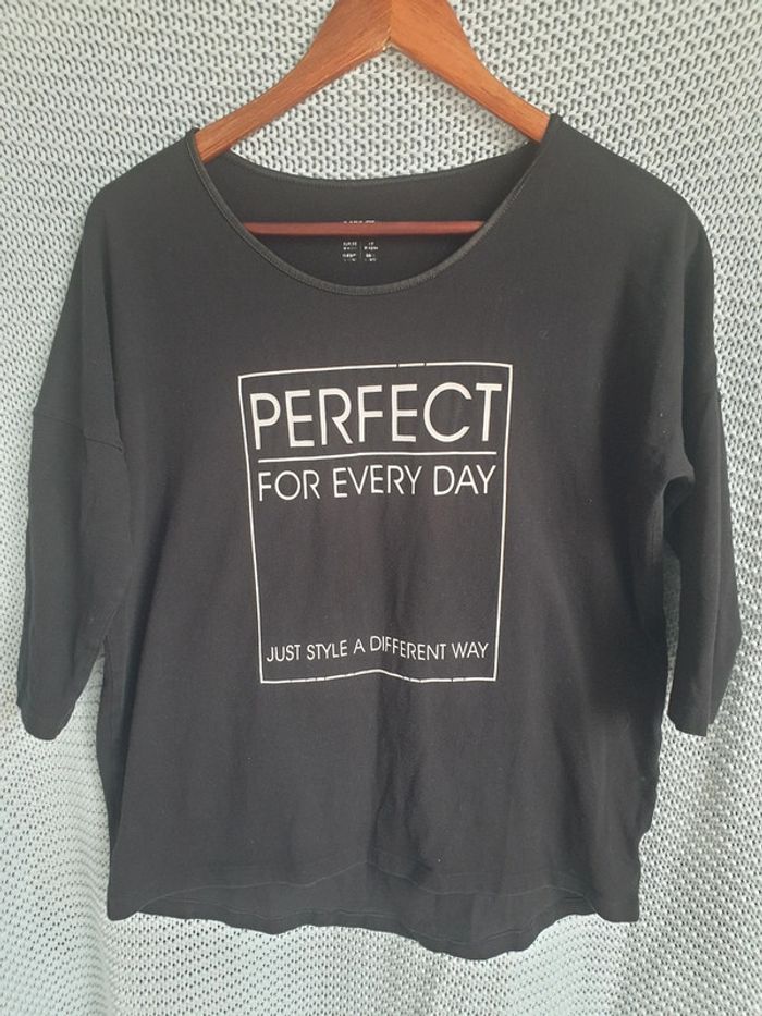 Haut large avec flocage " Perfection for every day". Cadre craquelé par endroits. Taille 42/44. #mimidacfemme #mimidacfemme42 #mimidacfemme44