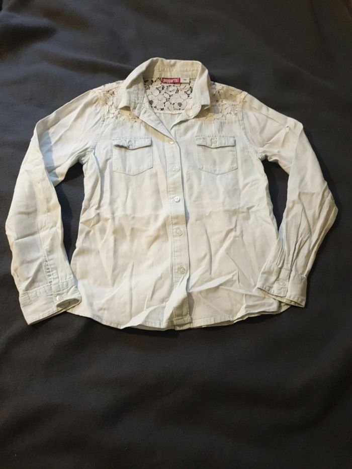 Chemise en jean fille avec dentelle taille 10 ans - photo numéro 1