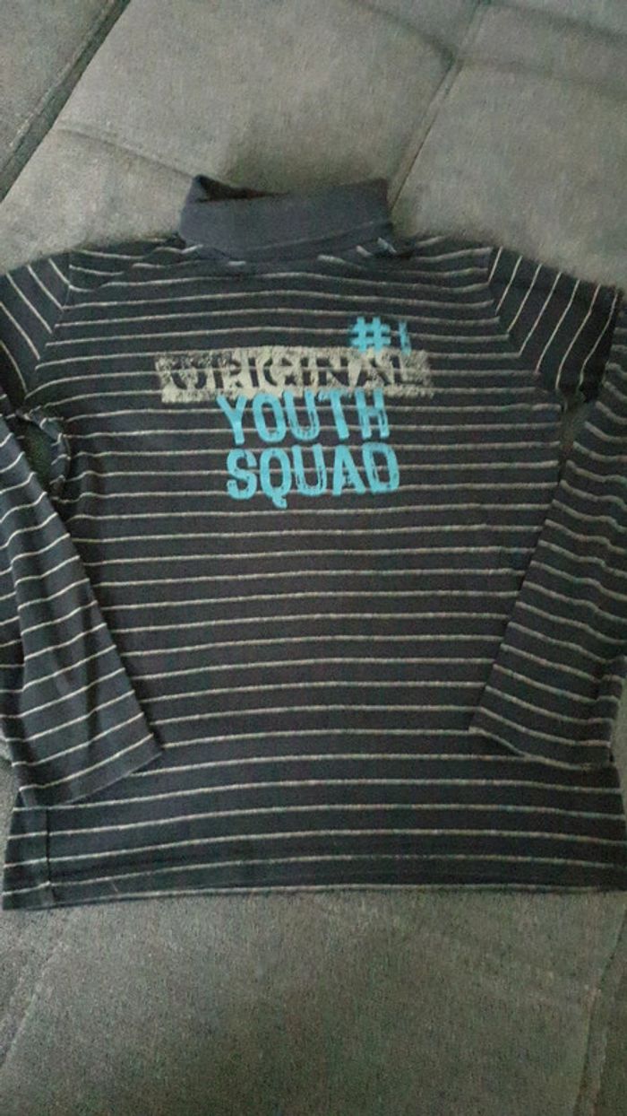 Tee-shirt col roulé garçon rayé taille 12 ans - photo numéro 1