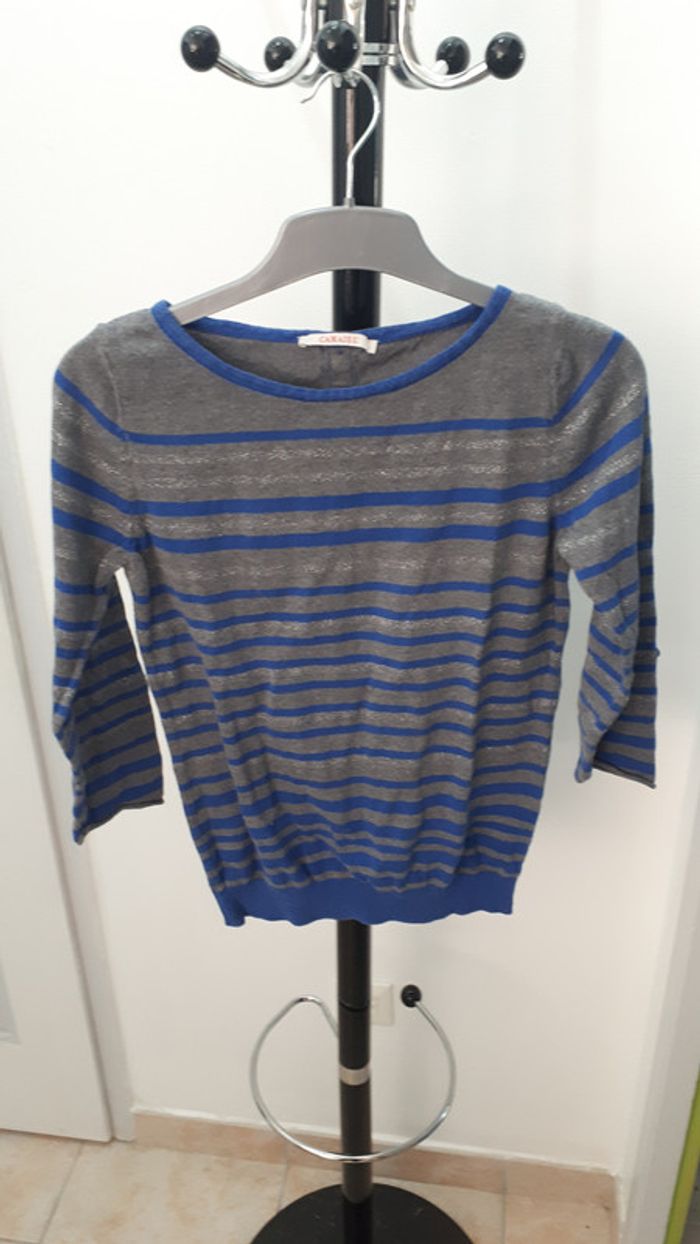 Pull rayé gris bleu argenté taille M