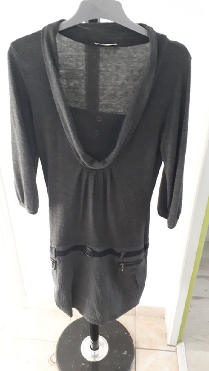 Robe pull grise avec empiècements rayés