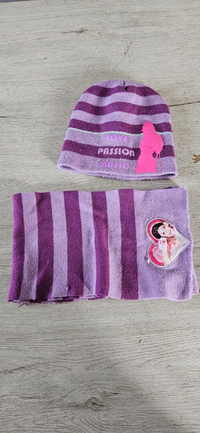 Ensemble bonnet et écharpe mauve fonce/mauve clair, Disney, Violetta, taille unique - photo numéro 1