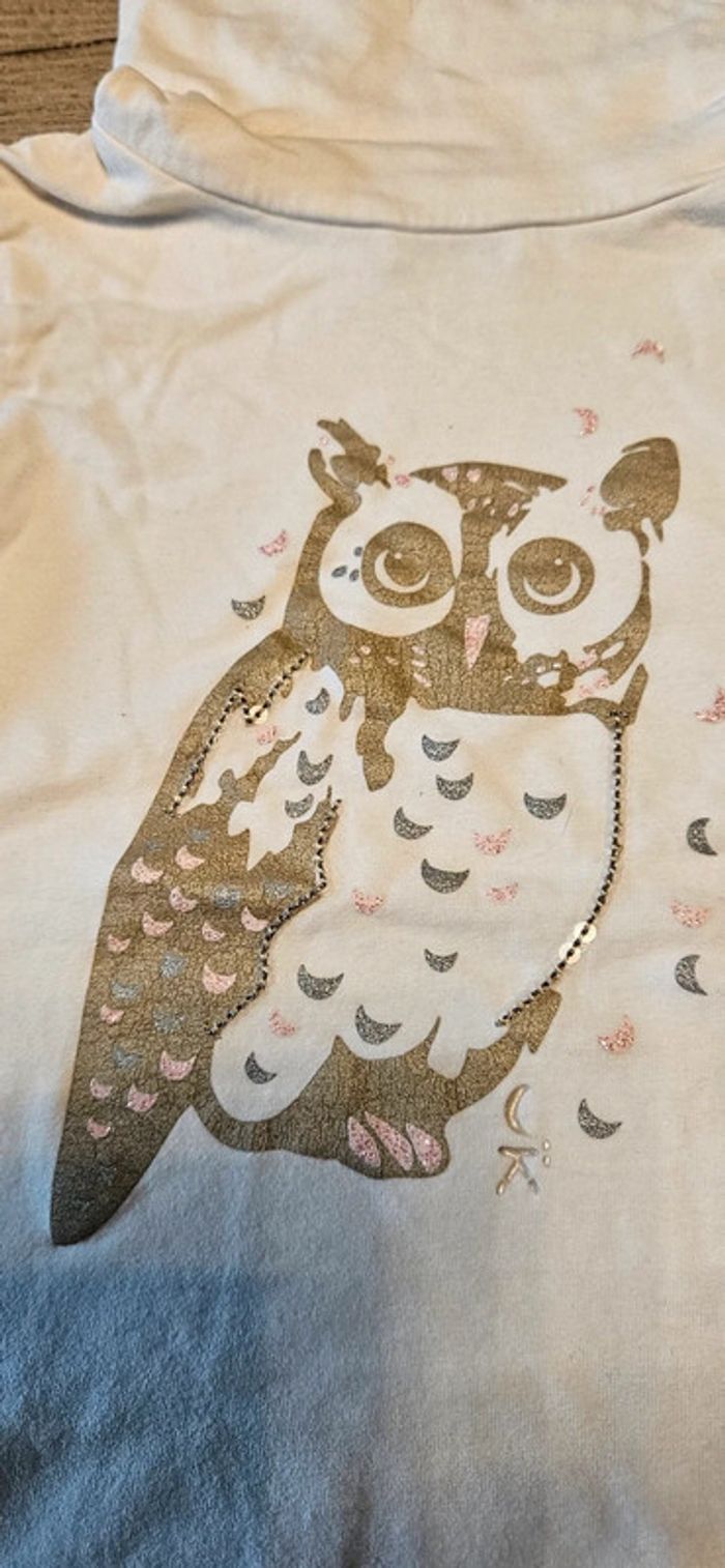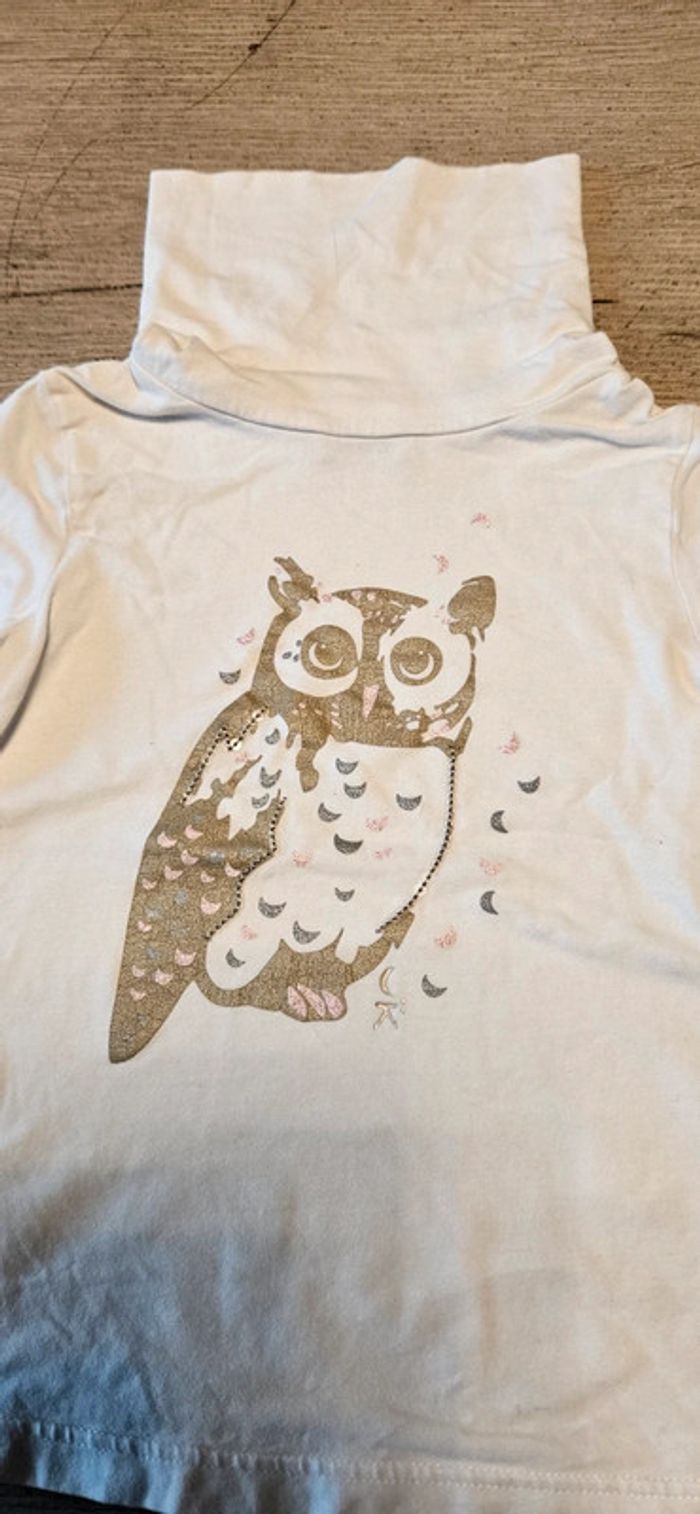 Sous pull blanc à col roulé, avec hibou, Okaïdi, 4 ans, nickel