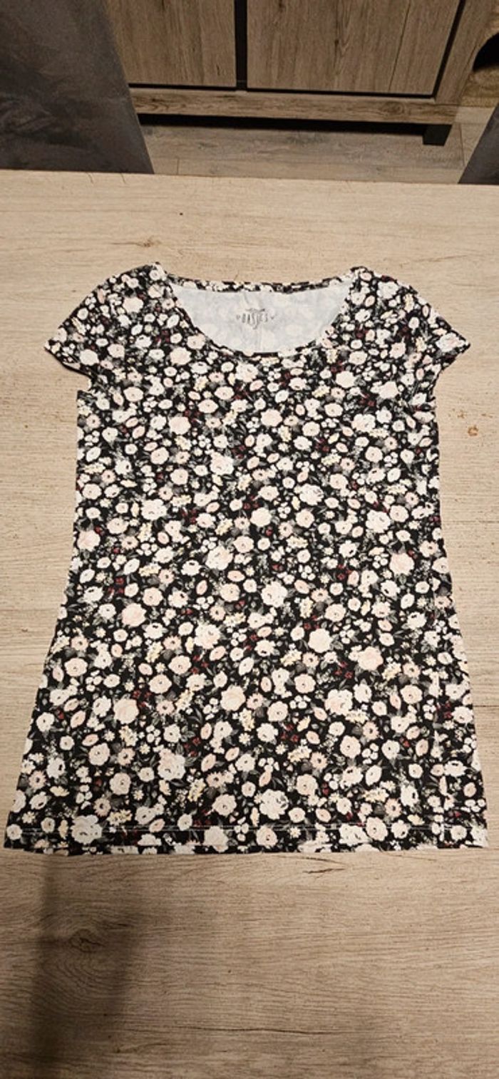 T shirt noir à fleurs, élastique, Clockhouse, taille M
