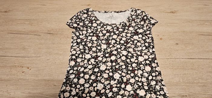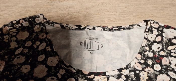 T shirt noir à fleurs, élastique, Clockhouse, taille M - photo numéro 1