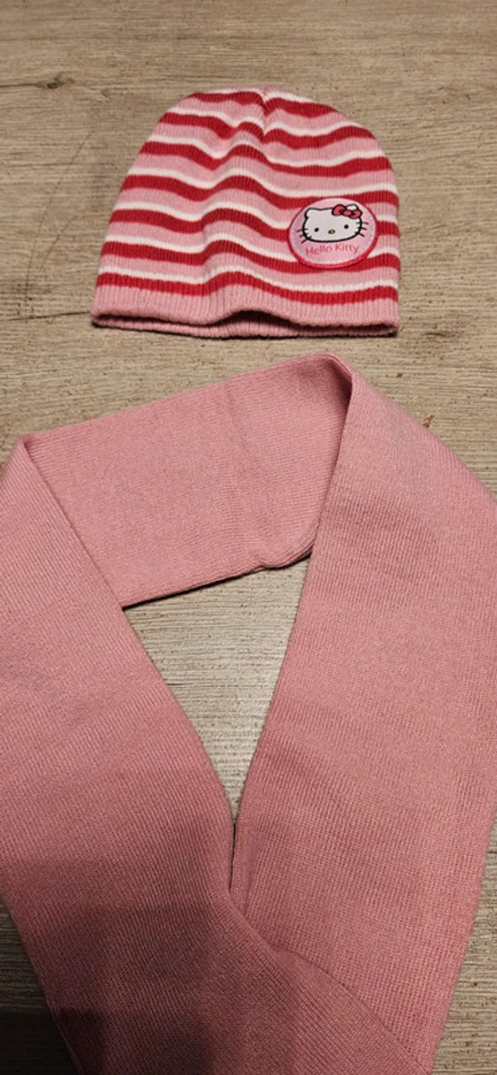 Ensemble bonnet et echarpe Hello Kitty rose, taille 5 à 8 ans - photo numéro 1