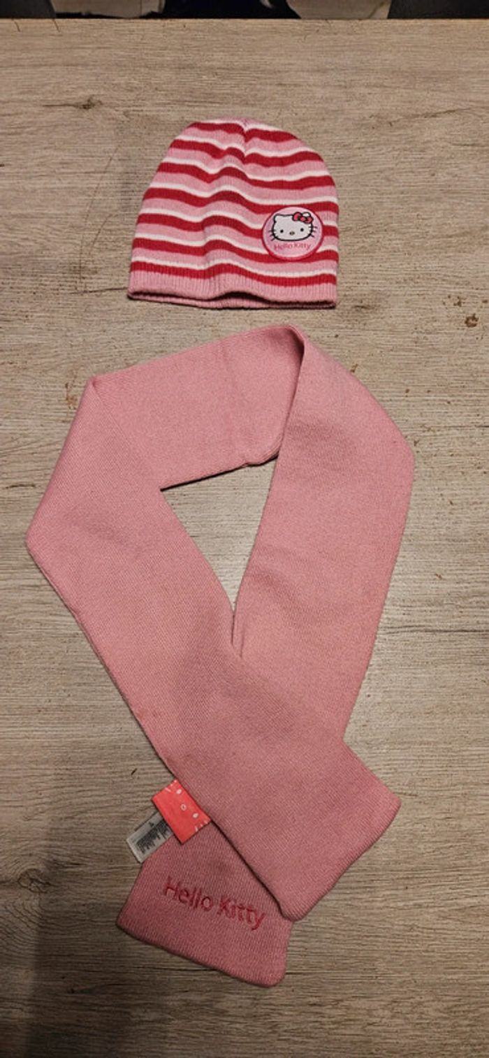 Ensemble bonnet et echarpe Hello Kitty rose, taille 5 à 8 ans